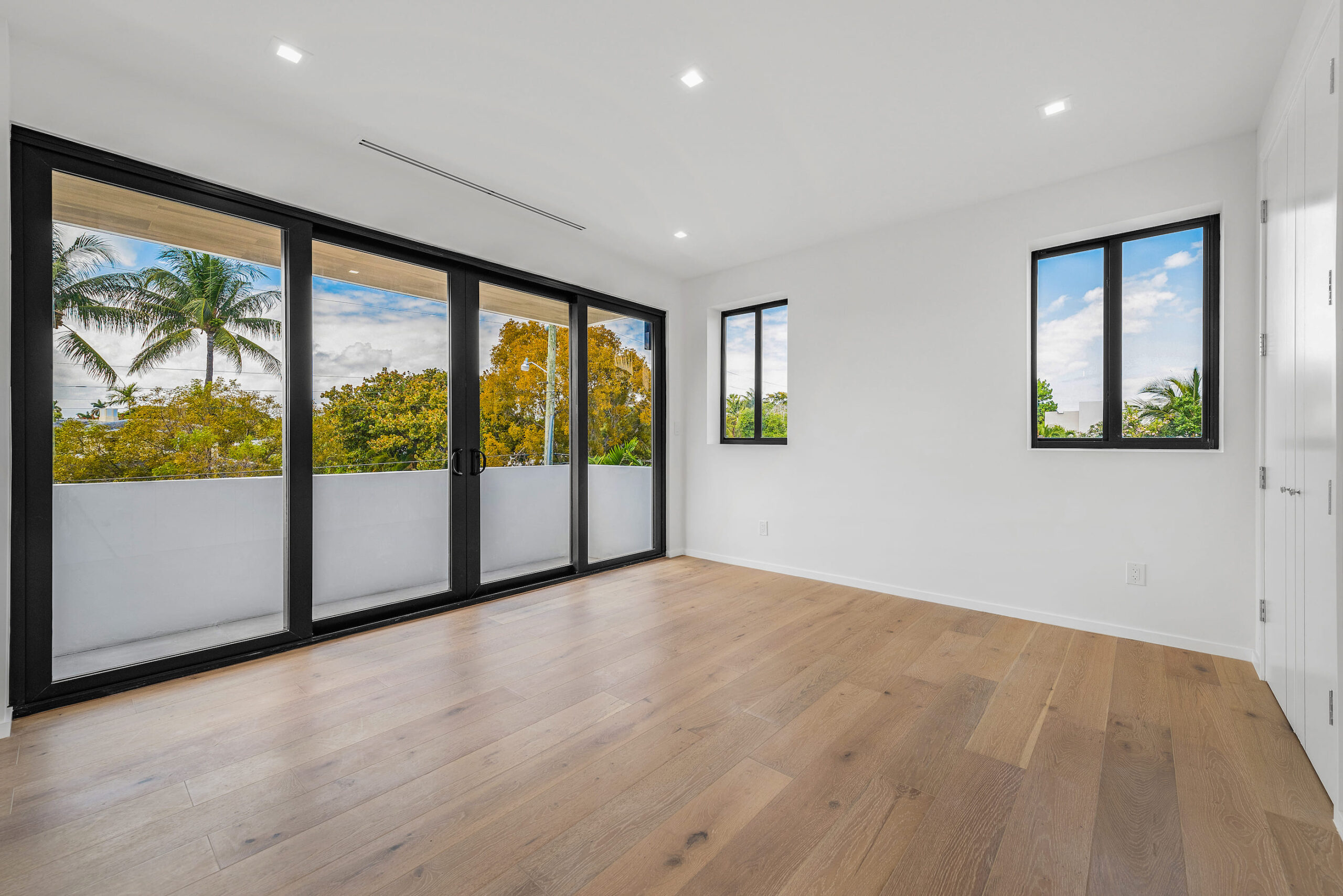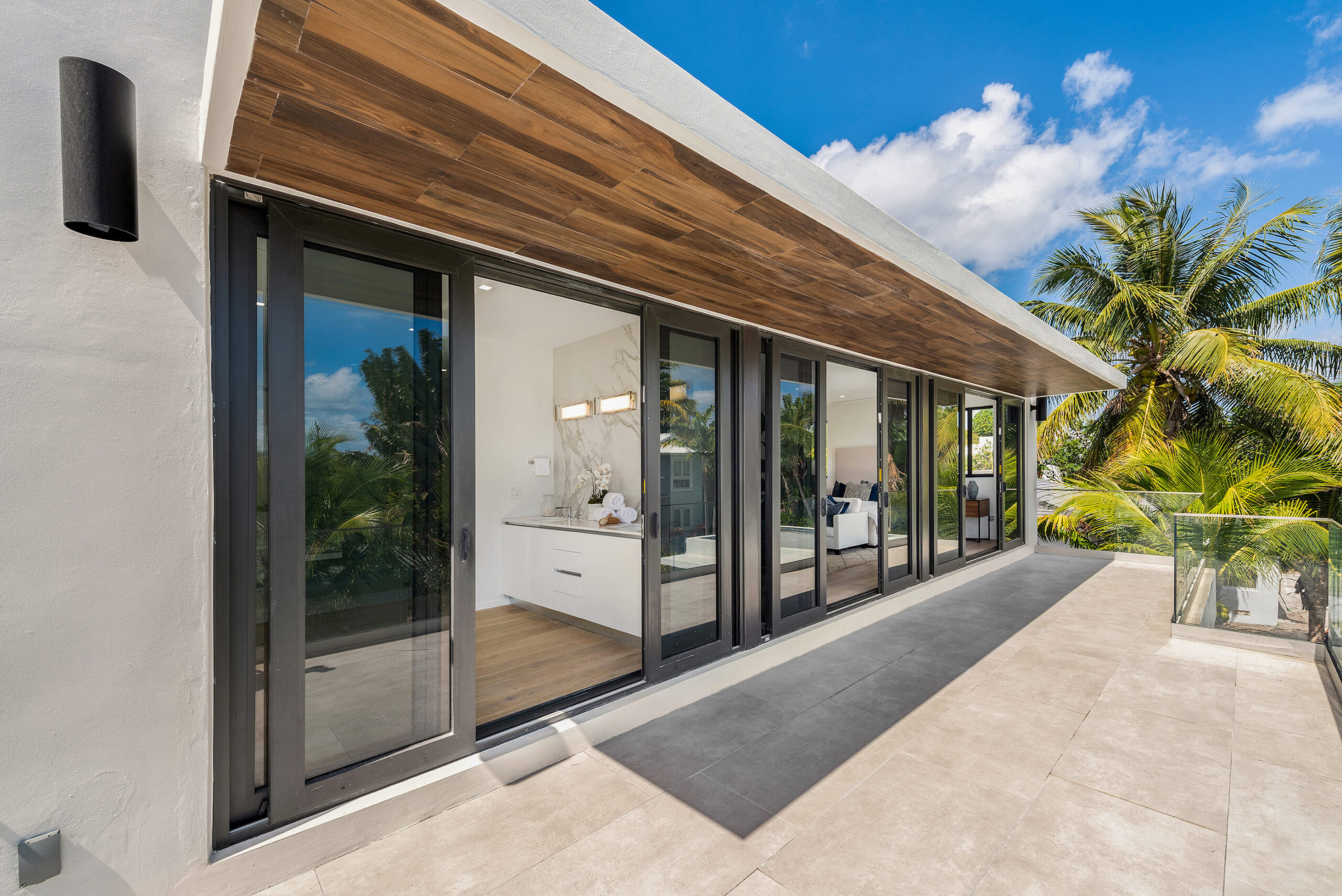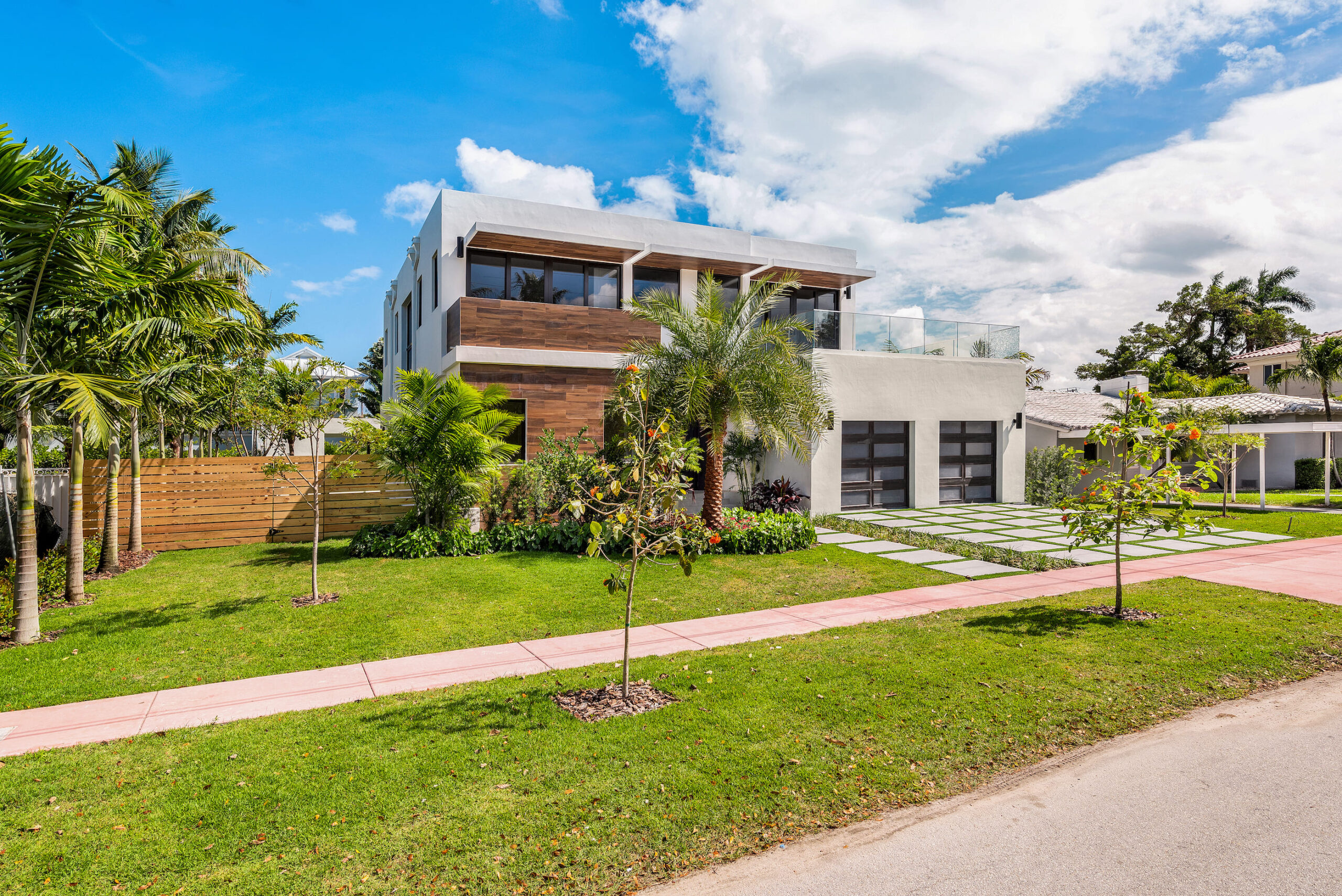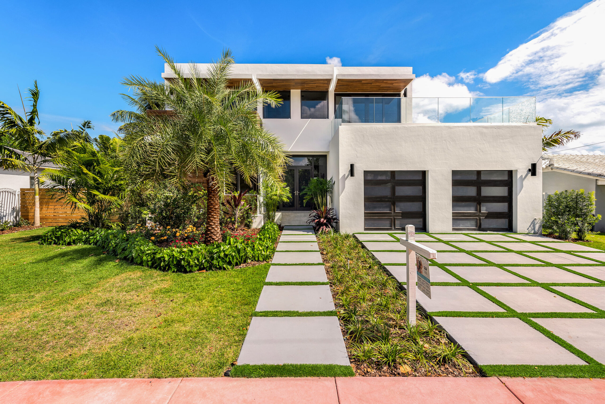 New construction contemporary smart home! Soaring ceilings & views of the sparkling pool greet you as you enter this 5BR/5 +2 BA modern masterpiece. This home boasts wide plank oak floors & an abundance of natural light throughout, creating a bright & tropical ambiance w/ oversized sliding hurricane impact doors which frame the open kitchen and living area.